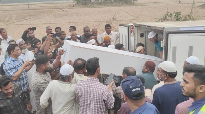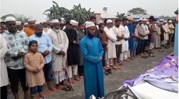সংযুক্ত আরব আমিরাতে ইরানের ড্রোন হামলায় নিহত মৌলভীবাজারের বড়লেখার বাসিন্দা সালেহ আহমেদের দাফন সম্পন্ন হয়েছে। সোমবার (৯ মার্চ) বিকেল ৫টায় বড়লেখা উপজেলার পৌরসভার গাজিটেকা শাহী ঈদগাহ মাঠে জানাজা শেষে পারিবারিক কবরস্থানে তার লাশ দাফন করা হয়। এর আগে দুপুর ১২টায় সিলেট ওসমানী আন্তর্জাতিক বিমানবন্দরে সালেহ আহমেদের মরদেহ গ্রহণ করে বাড়িতে আরো সংবাদ পড়ুন...