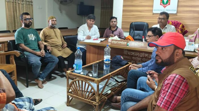 মৌলভীবাজারের শ্রীমঙ্গলে সাংবাদিক ও কলামিস্ট মো. এহসানুল হক (এহসান বিন মুজাহির)-এর বিরুদ্ধে দায়ের করা মিথ্যা ও হয়রানিমূলক মামলার প্রতিবাদে জরুরি সভা অনুষ্ঠিত হয়েছে। রোববার (১২ এপ্রিল) সকাল ১১টায় শ্রীমঙ্গল প্রেসক্লাবে এ সভা অনুষ্ঠিত হয়। সভায় সভাপতিত্ব করেন প্রেসক্লাবের কার্যকরী কমিটির সদস্য এবং দৈনিক আমাদের সময়ের শ্রীমঙ্গল প্রতিনিধি আবুজার রহমান বাবলা। আরো সংবাদ পড়ুন...