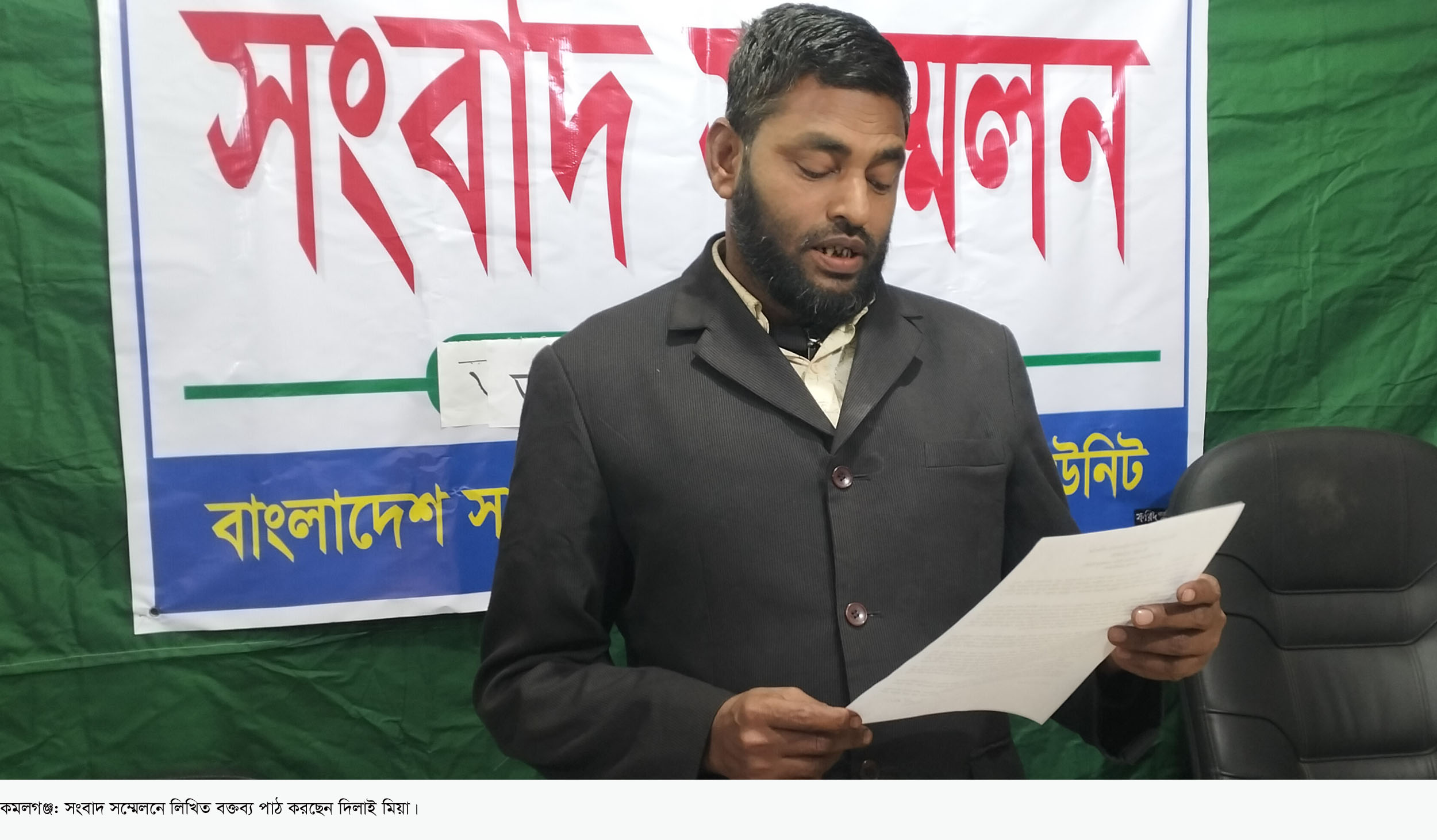 সংবাদ সম্মেলনে লিখিত বক্তব্যে দিলাই মিয়া বলেন, পরিবার সন্তান নিয়ে সৎ উপার্জনের মাধ্যমে জীবিকা নির্বাহ করার লক্ষ্যে মুন্সীবাজার ইউনিয়নের নারায়নক্ষেত্র গ্রামের যুক্তরাজ্য প্রবাসী সুয়েব আহমদ চৌধুরীর বাড়ির রক্ষণাবেক্ষনের জন্য দেখভালের দায়িত্ব পালন করছি। অতিসম্প্রতি বিভিন্ন প্রিন্ট, অনলাইন ও সামাজিক যোগাযোগ মাধ্যমে ‘রাস্তা বন্ধ করে প্রতিরোধক সৃষ্টি’ শিরোনামে সুয়েব আহমদ চৌধুরী ও আমাকে জড়িয়ে মজির উদ্দিন আহমদ চৌধুরী সম্পূর্ণ মিথ্যা, ভিত্তিহীন, উদ্দেশ্য প্রণোদিত ও বাস্তবতা বহির্ভূত বক্তব্য তুলে ধরেছেন। এতে সুয়েব আহমদ চৌধুরী ও আমার ভাবমূর্তি ক্ষুন্ন হয়েছে।
