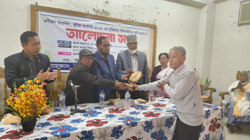 অনুষ্ঠানের অন্যতম আকর্ষণ ছিল গুণীজন সংবর্ধনা। সমাজ ও শিক্ষায় বিশেষ অবদানের স্বীকৃতিস্বরূপ অনুষ্ঠানে দুজন প্রবীণ ব্যক্তিকে সম্মাননা স্মারক উত্তরীয় প্রদান করা হয়। এরপর ‘কুইজ কন্টেস্ট-২০২৫’ পরীক্ষায় মেধার স্বাক্ষর রাখা কৃতি শিক্ষার্থীদের হাতে বৃত্তির অর্থ ও সনদ তুলে দেওয়া হয়।