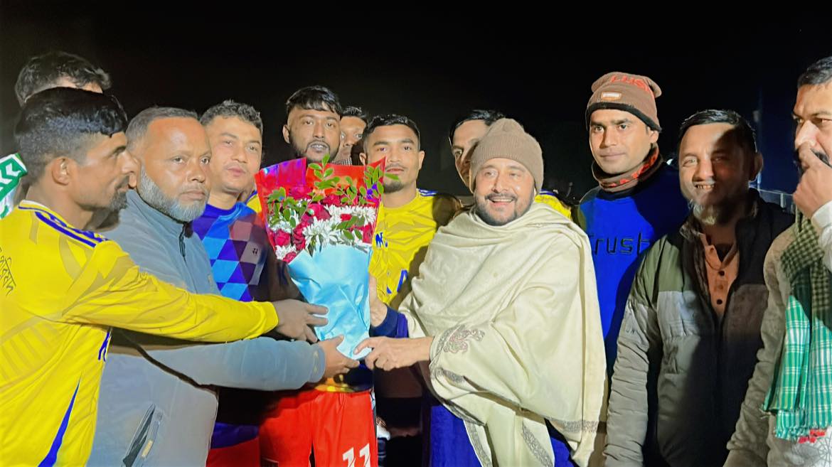 সংক্ষিপ্ত আলোচনা সভা শেষে প্রধান অতিথি সবাইকে নিয়ে নাইট মিনি ফুটবল টুর্নামেন্ট ফাইনাল উদ্বোধন শুভ উদ্বোধন করেন।