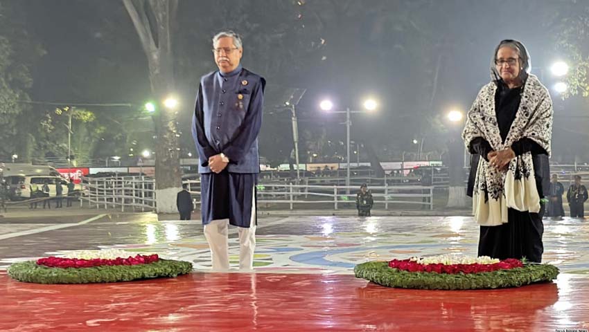 রাষ্ট্রপতি ও প্রধানমন্ত্রী পুষ্পস্তবক অর্পণ শেষে সেখানে কিছুক্ষণ নীরবে দাঁড়িয়ে থেকে ভাষাশহীদদের স্মৃতির প্রতি গভীর শ্রদ্ধা নিবেদন করেন।