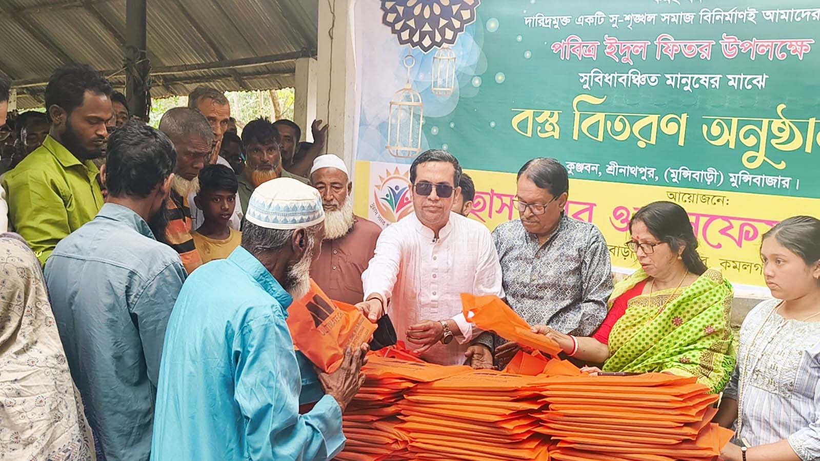 ঈদ উপলক্ষে কমলগঞ্জে অসচ্ছলদের মাঝে শাড়ি-লুঙ্গি বিতরণ