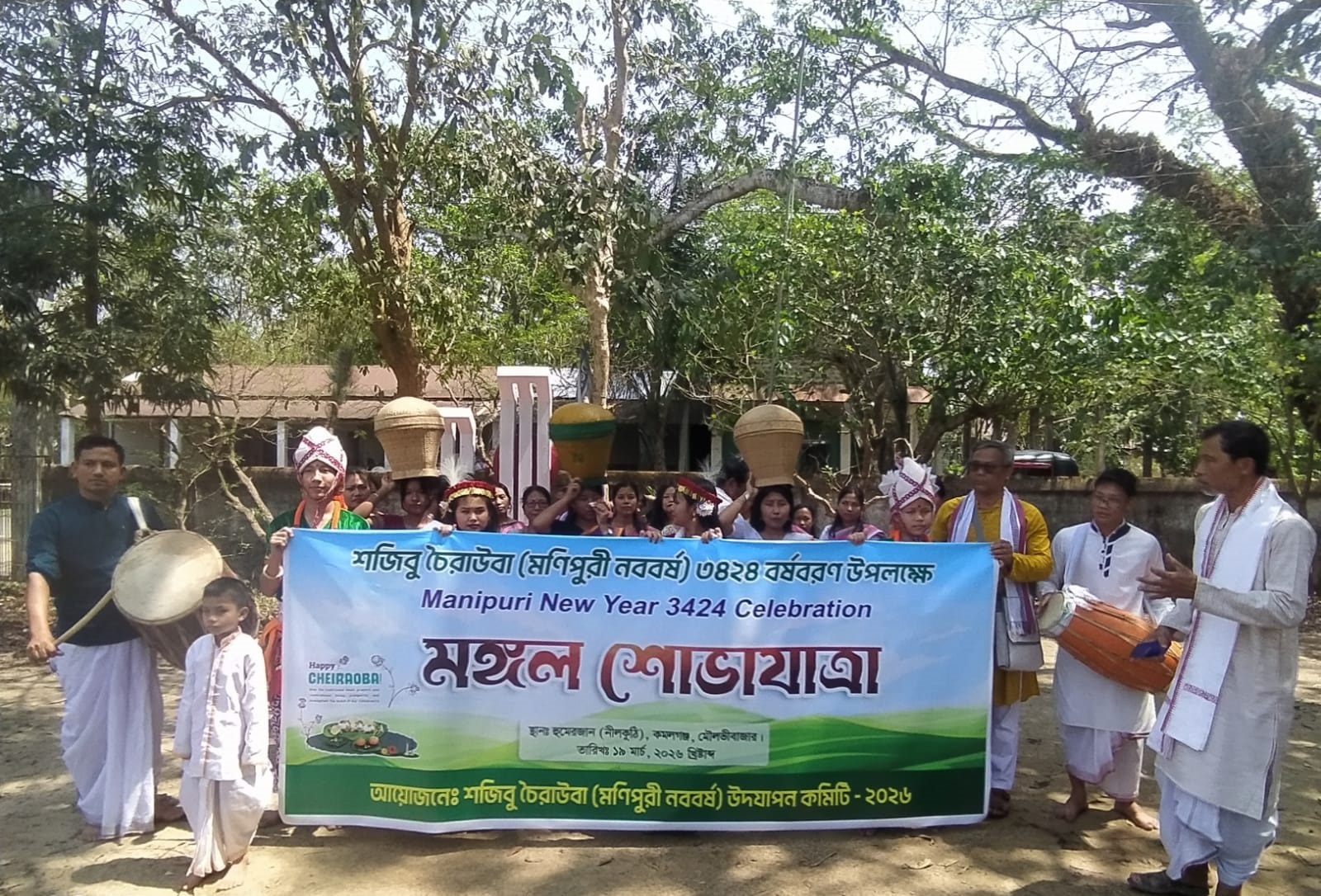 মৌলভীবাজারের কমলগঞ্জে বর্ণাঢ্য আয়োজনের মধ্য দিয়ে মণিপুরী সম্প্রদায়ের ঐতিহ্যবাহী নববর্ষ উৎসব ‘শজিবু চৈরাউবা’ ৩৪২৪-এর আনুষ্ঠানিক উদ্বোধন করা হয়েছে। বৃহস্পতিবার (১৯ মার্চ) সকালে উপজেলার আদমপুর ইউনিয়নের হোমেরজান গ্রামের মাঠে জাতীয় পতাকা ও মণিপুরীদের নিজস্ব পতাকা উত্তোলন এবং জাতীয় সংগীত পরিবেশনের মাধ্যমে উৎসবের উদ্বোধন করেন উদযাপন কমিটির আহ্বায়ক অবুজম মনিভদ্র।