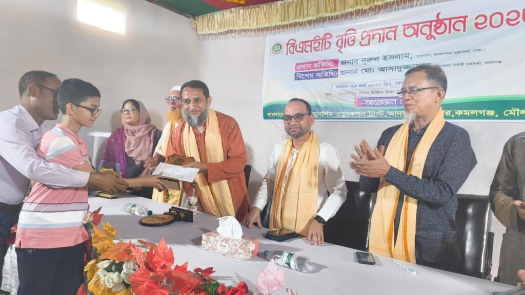 মৌলভীবাজারের কমলগঞ্জ উপজেলায় বাংলাদেশ মণিপুরি মুসলিম এডুকেশন ট্রাস্ট (বিএমইটি)’র উদ্যোগে মেধাবৃত্তি পরীক্ষায় উত্তীর্ণ শিক্ষার্থীদের মাঝে নগদ অর্থ ও সম্মাননা স্মারক বিতরণ করা হয়েছে। সোমবার (২৩ মার্চ) দুপুর ১টায় উপজেলার আদমপুর তেতইগাঁও রশিদ উদ্দিন উচ্চ বিদ্যালয়ের মিলনায়তনে আয়োজিত এ অনুষ্ঠানে স্থানীয় শিক্ষা ও সামাজিক অঙ্গনের বিশিষ্টজনেরা উপস্থিত ছিলেন।
