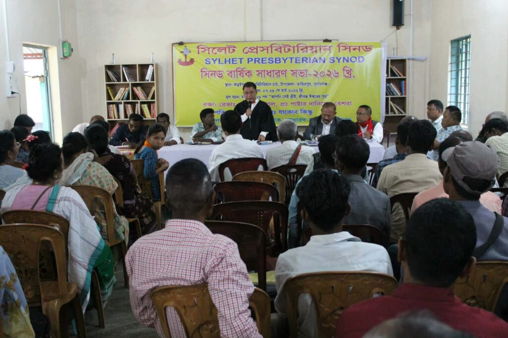 সুনামগঞ্জের তাহিরপুর উপজেলার কড়ইগড়া প্রেসবিটারিয়ান চার্চে সিলেট প্রেসবিটারিয়ানের (সিনড) বার্ষিক সাধারণ সভা-২০২৬ অনুষ্ঠিত হয়েছে। শনিবার (২৮ মার্চ) সুনামগঞ্জের তাহিরপুর উপজেলার কড়ইগড়ায় এ উপলক্ষে অনুষ্ঠিত সাধারণ সভায় সিলেট বিভাগের বিভিন্ন চার্চের শতাধিক প্রতিনিধি (ডেলিগেট) অংশগ্রহণ করেন।