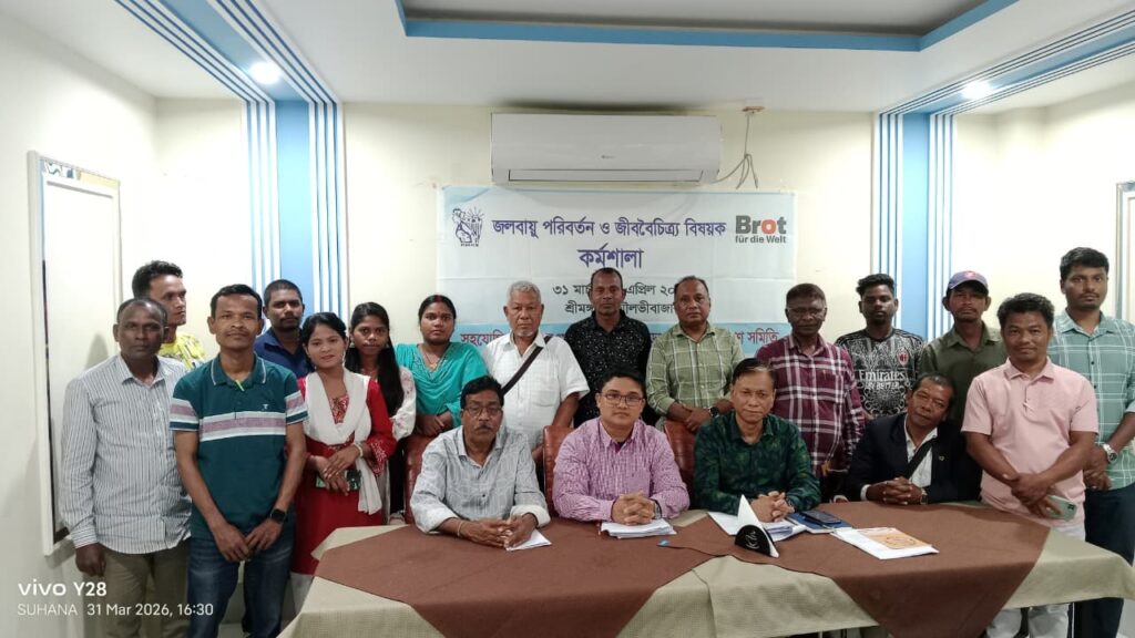 খাগড়াপুর মহিলা কল্যাণ সমিতি (কেএমকেএস)-এর আয়োজনে এবং বাংলাদেশ ইন্ডিজেনাস পিপলস নেটওয়ার্ক অন ক্লাইমেট চেঞ্জ এন্ড বায়োডাইভার্সিটি (বিপনেট) সিলেট চ্যাপটার এর সহযোগিতায় কর্মশালাটি অনুষ্ঠিত হচ্ছে।