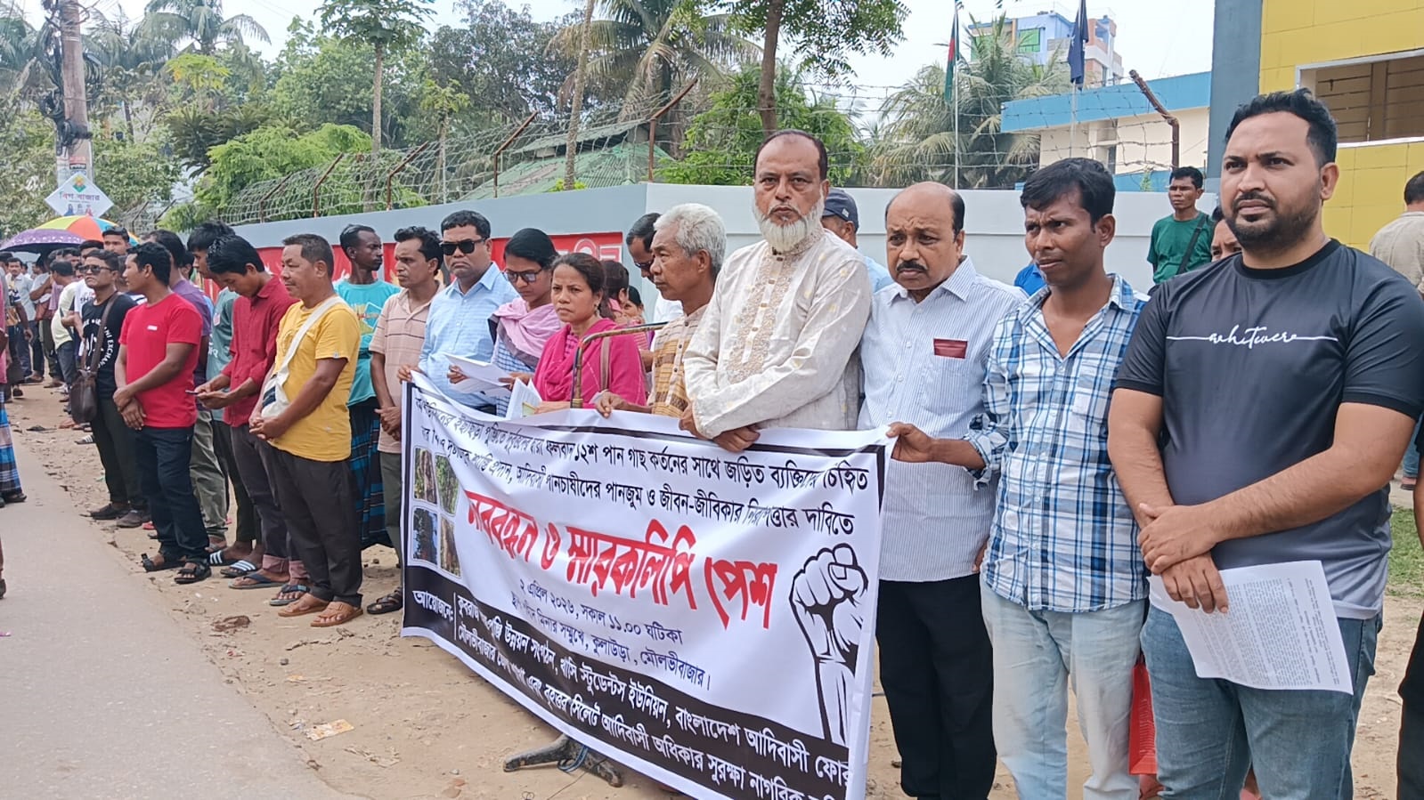 মৌলভীবাজারের কুলাউড়া উপজেলার কর্মধা ইউনিয়নের ইছাছড়া খাসিয়া পুঞ্জিতে আদিবাসী এক দম্পতির ১,২০০-এর বেশি পরিপক্ব পানগাছ কেটে ফেলার ঘটনায় এলাকায় তীব্র ক্ষোভ ও উত্তেজনা ছড়িয়ে পড়েছে। এ ঘটনার প্রতিবাদে এবং দোষীদের গ্রেফতারের দাবিতে বৃহস্পতিবার (২ এপ্রিল) কুলাউড়া শহরে অনুষ্ঠিত হয়েছে বিশাল মানববন্ধন ও বিক্ষোভ কর্মসূচি।