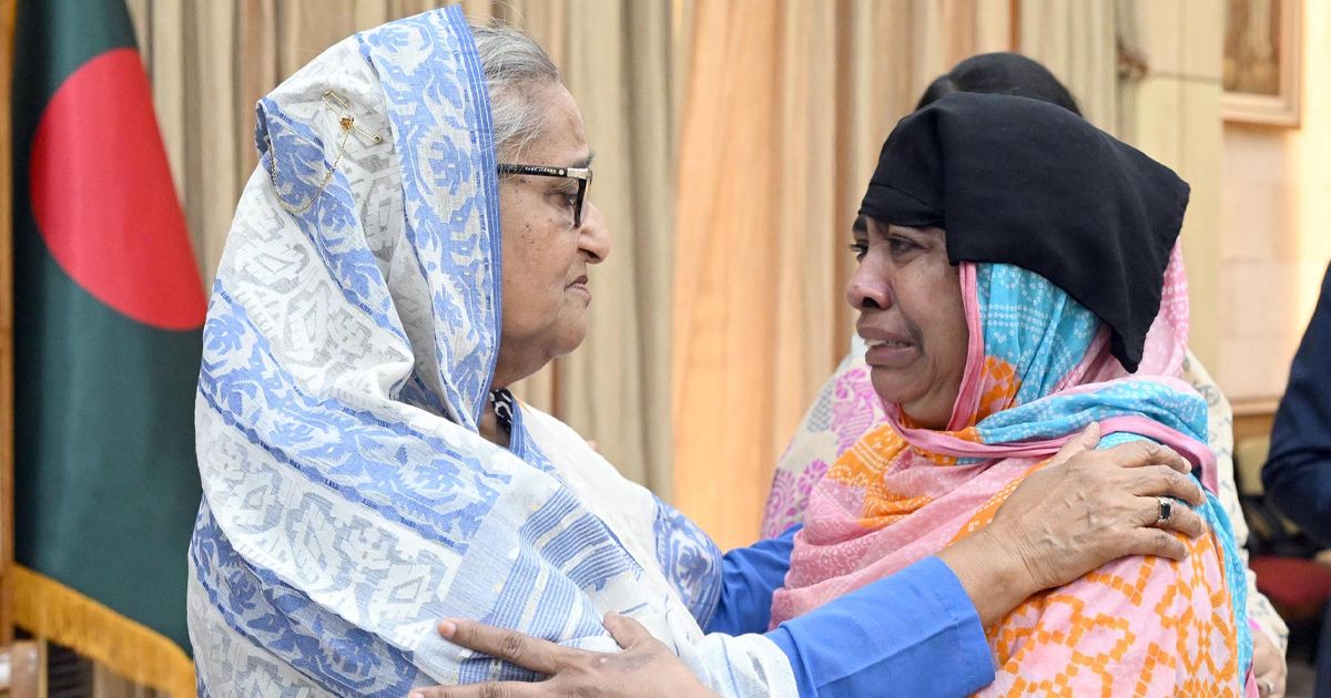 সাম্প্রতিক কোটা সংস্কার আন্দোলনে চলা সহিংসতায় নিহত হওয়া শিক্ষার্থীদের পরিবারের সদস্যদের সঙ্গে দেখা করেছেন প্রধানমন্ত্রী শেখ হাসিনা। তাদের সঙ্গে তিনি কথা বলেন, খোঁজ-খবর নেন। এসময় অনেকে প্রধানমন্ত্রীকে জড়িয়ে ধরে কান্নায় ভেঙে পড়েন। আবেগাপ্লুত প্রধানমন্ত্রী শেখ হাসিনাকেও অশ্রু সজল হতে দেখা যায়।