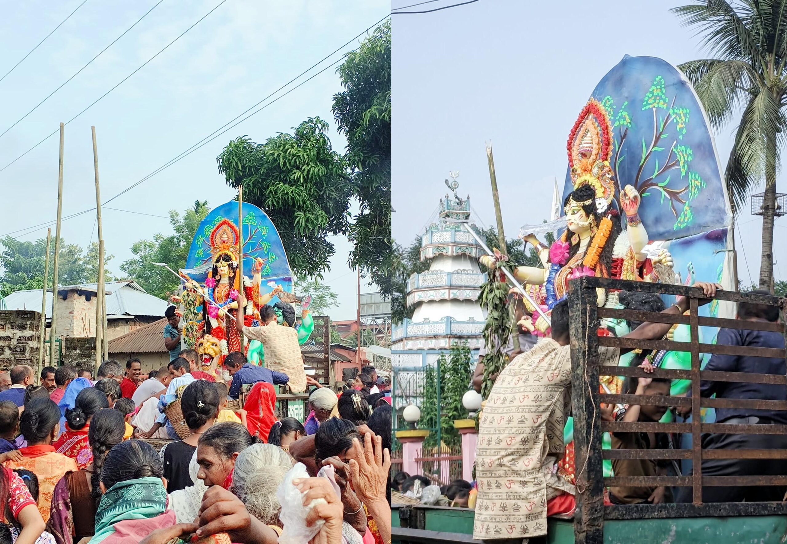 শহরের বিভিন্ন মন্দির ও পাড়া থেকে প্রতিমা নিয়ে যাওয়া হবে নদীতে।