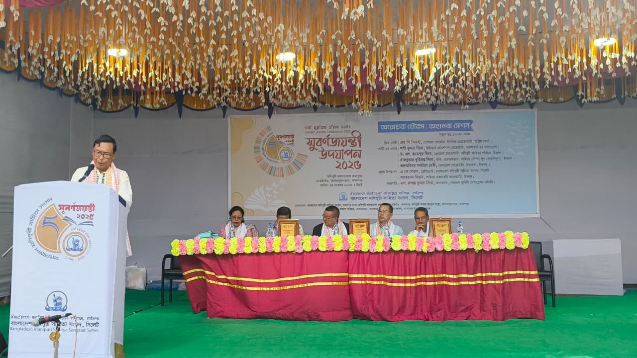 মণিপুরী সংস্কৃতি, কবিতা পাঠ ও আলোচনা সভাসহ বর্ণাঢ্য আয়োজনে উদযাপিত হয়েছে বাংলাদেশ মণিপুরি সাহিত্য সংসদের ৫০তম সুবর্ণজয়ন্তী। শুক্রবার (১৪ নভেম্বর) বিকেলে বাংলাদেশ মণিপুরী সাহিত্য সংসদের আয়োজনে উপজেলার আদমপুর ইউনিয়নের তেতইগাঁও মণিপুরী কালচারাল কমপ্লেক্সে অনুষ্ঠিত হয়। সুবর্ণজয়ন্তী উদযাপনের প্রথম পর্বে আলোচনা সভা অনুষ্ঠিত হয়।
