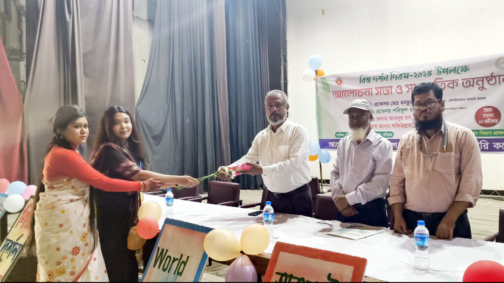 প্রথমবারের মতো মৌলভীবাজার সরকারি কলেজে আন্তর্জাতিক দর্শন দিবস উপলক্ষে দর্শন বিভাগ ও কলেজ কর্তৃপক্ষের যৌথ উদ্যোগে আলোচনা সভা ও সাংস্কৃতিক অনুষ্ঠানের আয়োজন করা হয়। অনুষ্টানের শুরুতে কোরআন থেকে তেলাওয়াত ও গীতা পাঠ করে দর্শন বিভাগের শিক্ষার্থী ।