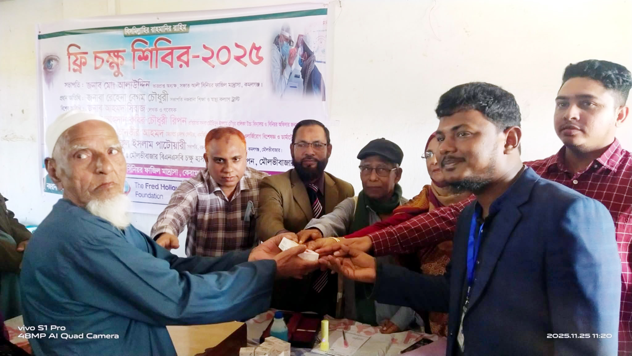 চিকিৎসা সেবা প্রদান করেন ডা. মোজাহের হোসেন। চিকিৎসা সহযোগিতায় ছিল মৌলভীবাজার বিএনএসবি চক্ষু হাসপাতাল।