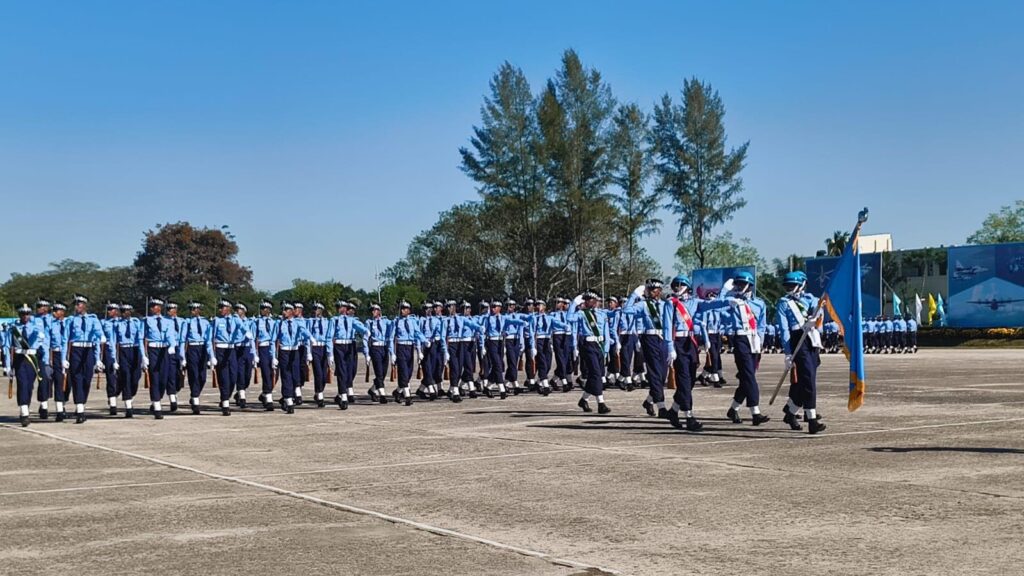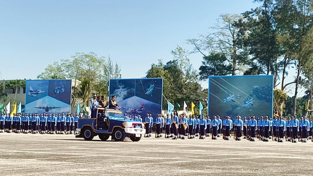 এর আগে বিমান বাহিনী প্রধান প্যারেড গ্রাউন্ডে এসে পৌঁছলে বিমান বাহিনী ঘাঁটি বীর উত্তম এ কে খন্দকার-এর এয়ার অধিনায়ক এয়ার ভাইস মার্শাল মোহাম্মদ খায়ের উল আফসার, জিইউপি, এনডিসি, পিএসসি এবং রিক্রুটস্ ট্রেনিং স্কুলের অধিনায়ক গ্রুপ ক্যাপ্টেন মো. খায়রুল বাসার, পিএসসি তাঁকে স্বাগত জানান।