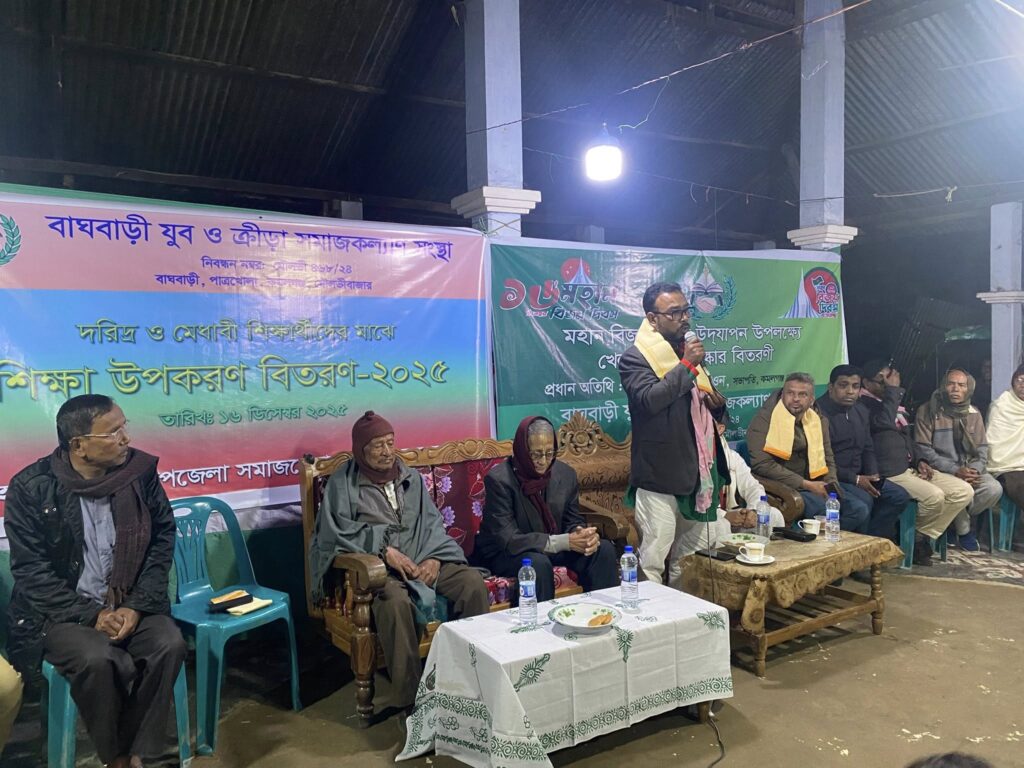 মঙ্গলবার (১৬সিম্বের) সন্ধ্যায় উপজেলার বাঘবাড়ী মন্ডপ প্রাঙ্গণে আয়োজিত এক অনুষ্ঠানে শতাধিক শিক্ষার্থীর হাতে খাতা, কলম, পেন্সিল ও অন্যান্য শিক্ষা সামগ্রী সহ মহান বিজয় দিবস উপলক্ষে বিভিন্ন খেলাধুলার আয়োজন করা হয়, সেখানেও অতিথিরা পুরুষ্কার তুলে দেওয়া হয়। এই মহৎ উদ্যোগে প্রধান অতিথি হিসেবে উপস্থিত ছিলেন কমলগঞ্জ প্রেসক্লাবের সভাপতি আসহাবুজ্জামান শাওন।