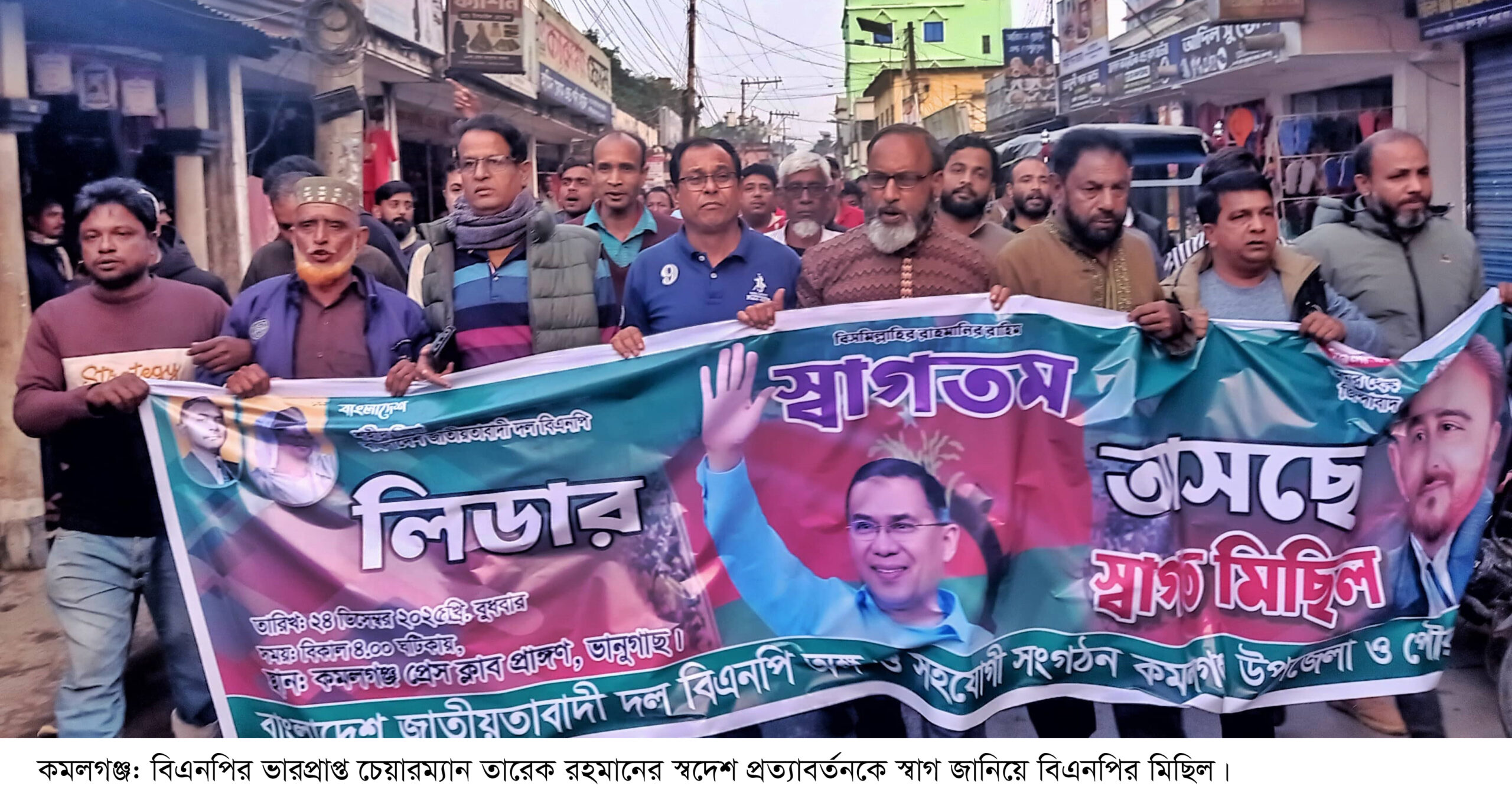 মিছিলটি কমলগঞ্জ পৌর এলাকার ভানুগাছ বাজারের গুরুরুত্বপূর্ণ পয়েন্টগুলো প্রদক্ষিণ করে। এ সময় নেতাকর্মীরা তারেক রহমানের স্বদেশ প্রত্যাবর্তনকে স্বাগত জানিয়ে বিভিন্ন শ্লোগান দেন।